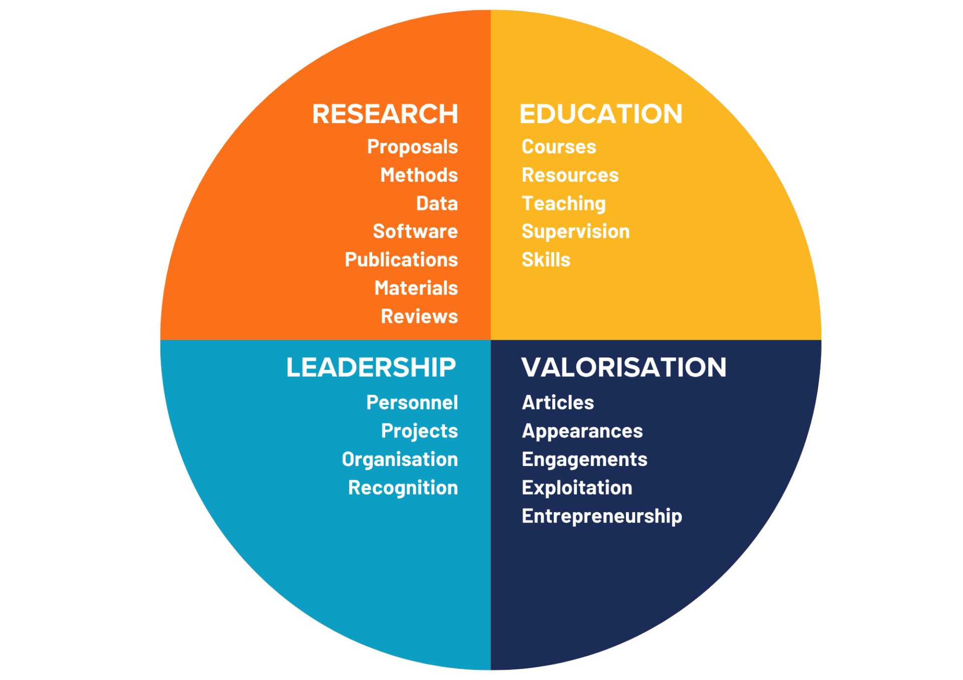 This subcategory focuses on skill development by researchers. There is flexibility in the definition of ‘courses’ and ‘certificates’, which may include variations in course scope and duration. The courses and certificates may cover any research, education, leadership, and valorisation skills.