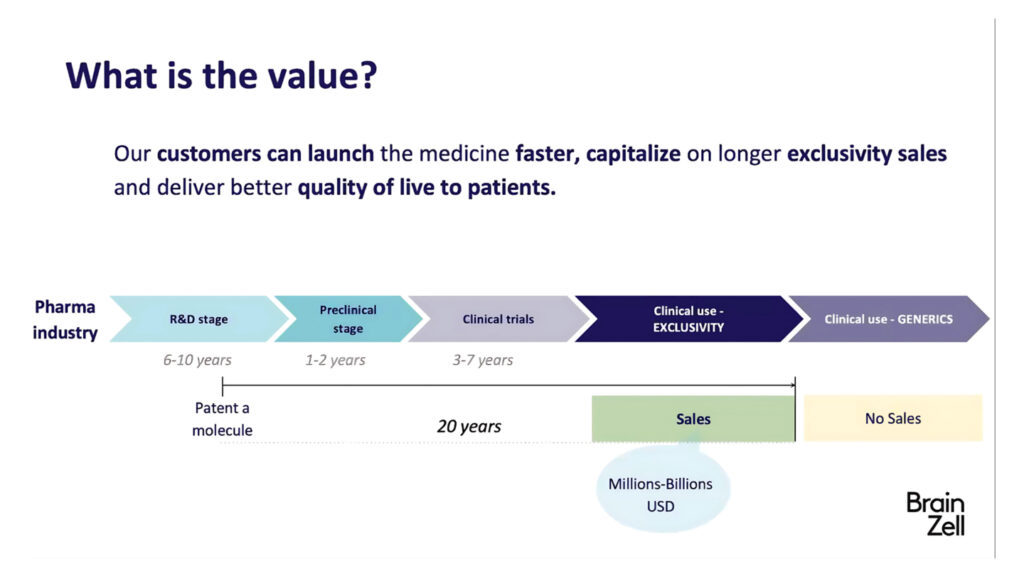 Following João’s presentation, Petra Szeszula introduced her startup, BrainZell, which focuses on developing human brain organoids to improve drug development success rates in neuroscience. She explained that these miniature brain tissues could be used to test new molecules on a larger scale and more efficiently than traditional animal testing methods.