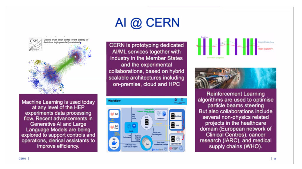 In his talk, João emphasised the importance of innovation in tackling societal challenges and showcased several technological advancements that had emerged from CERN’s research. These included breakthroughs in radiotherapy, medical imaging, and machine learning. Furthermore, he elaborated on CERN’s collaboration with industry through mechanisms such as pre-commercial procurement and the CERN Quantum Technology Initiative. He stressed that these collaborations benefited both CERN and the private sector by providing access to cutting-edge research, fostering innovation, and accelerating time-to-market for new technologies.